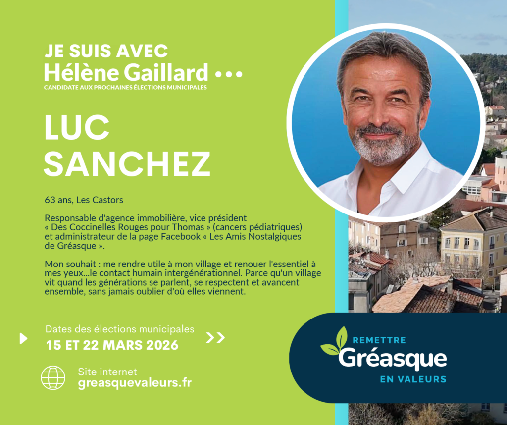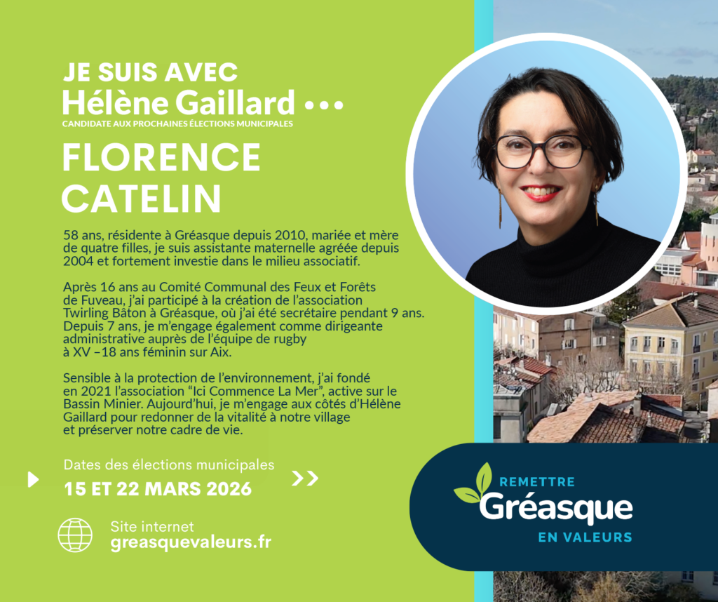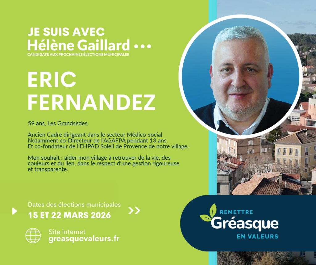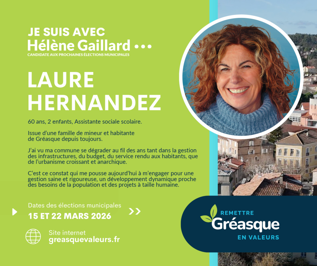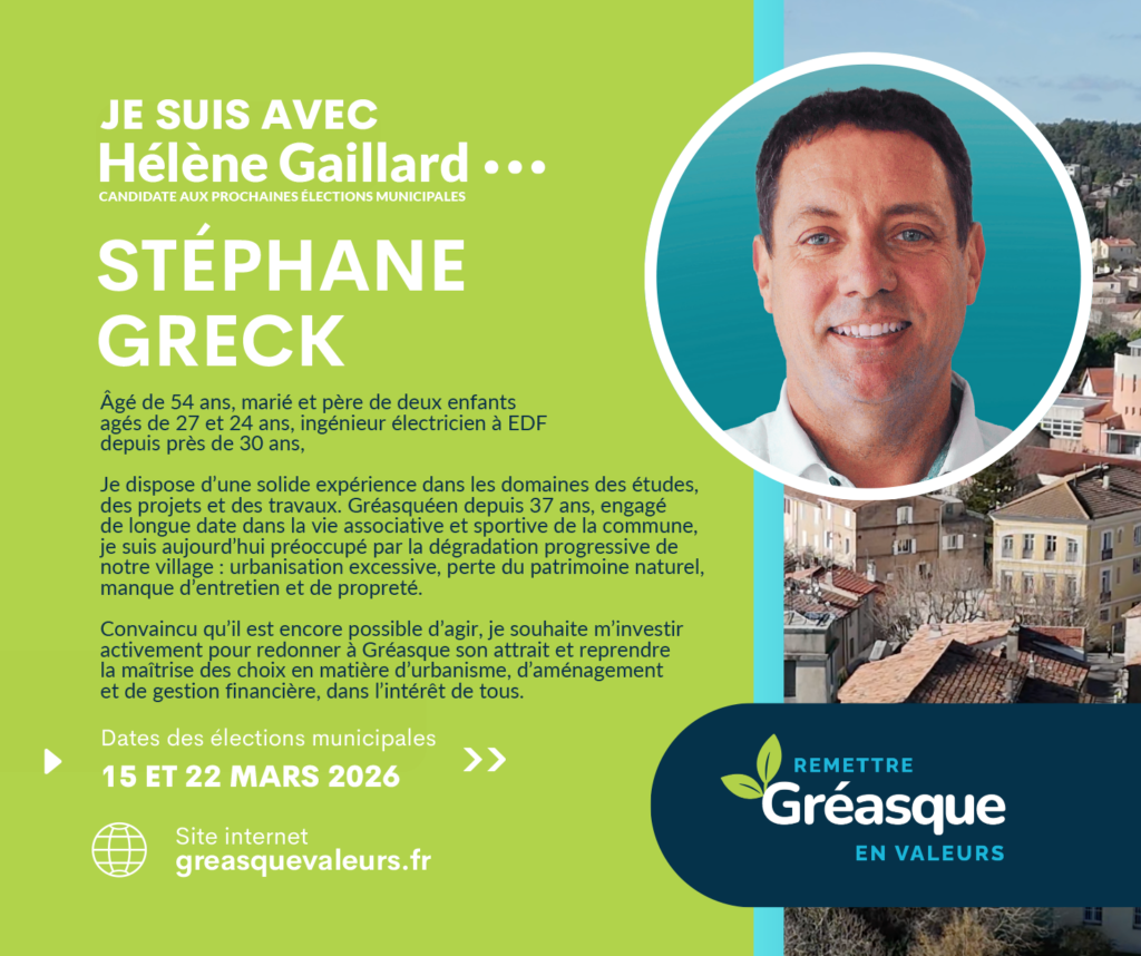 C’est dans cette continuité que je soutiens la liste d’Hélène Gaillard. Ma conviction est claire : Gréasque a besoin d’une gestion plus transparente, d’une communication plus lisible et d’outils modernes, accessibles et adaptés aux enjeux actuels.