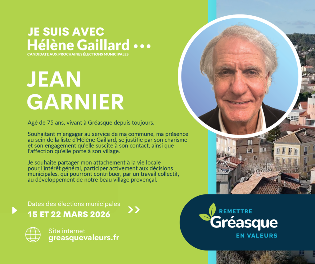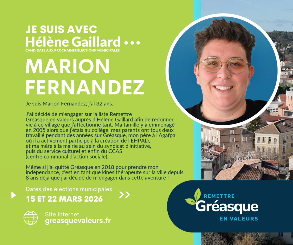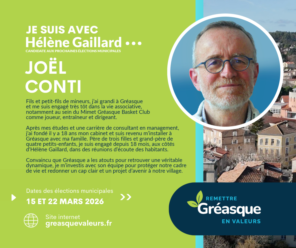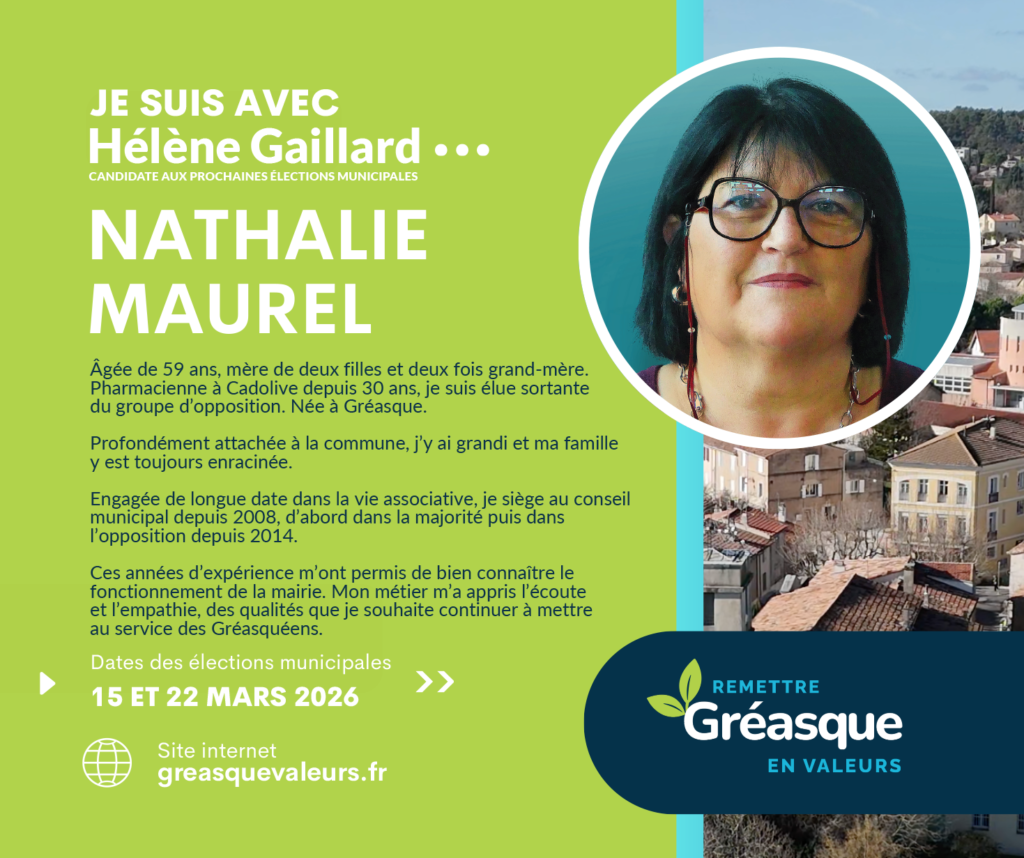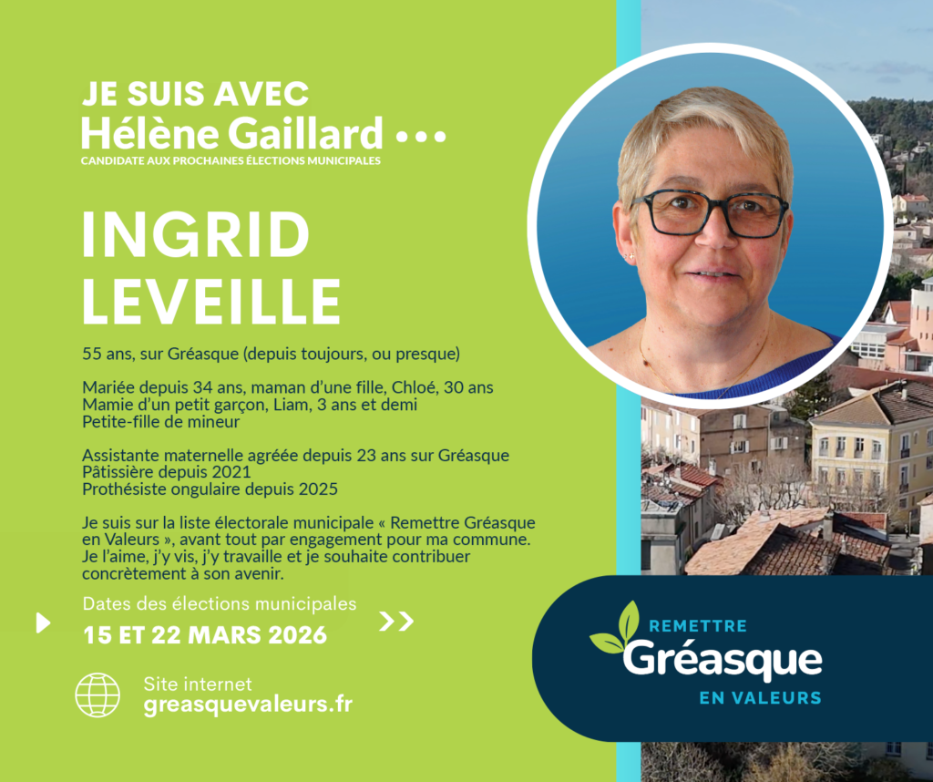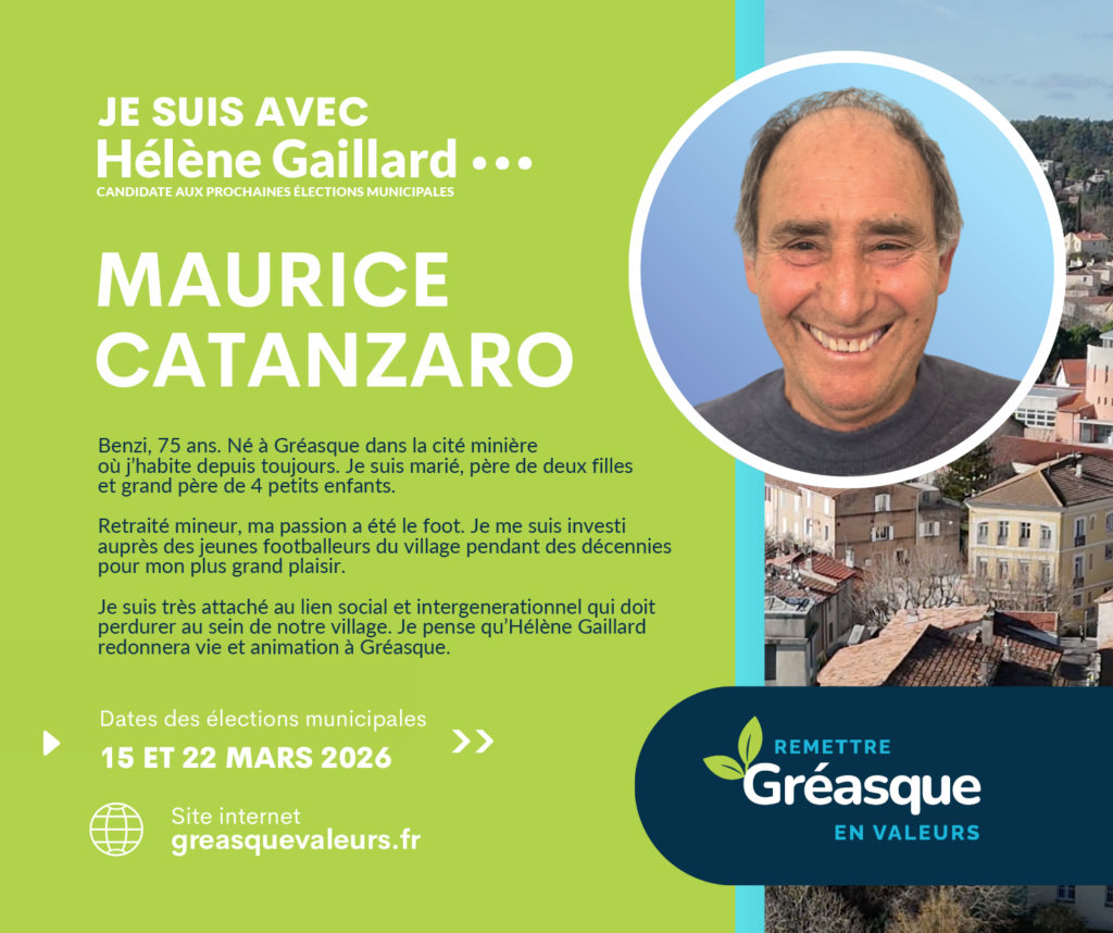 C’est dans cette continuité que je soutiens la liste d’Hélène Gaillard. Ma conviction est claire : Gréasque a besoin d’une gestion plus transparente, d’une communication plus lisible et d’outils modernes, accessibles et adaptés aux enjeux actuels.
