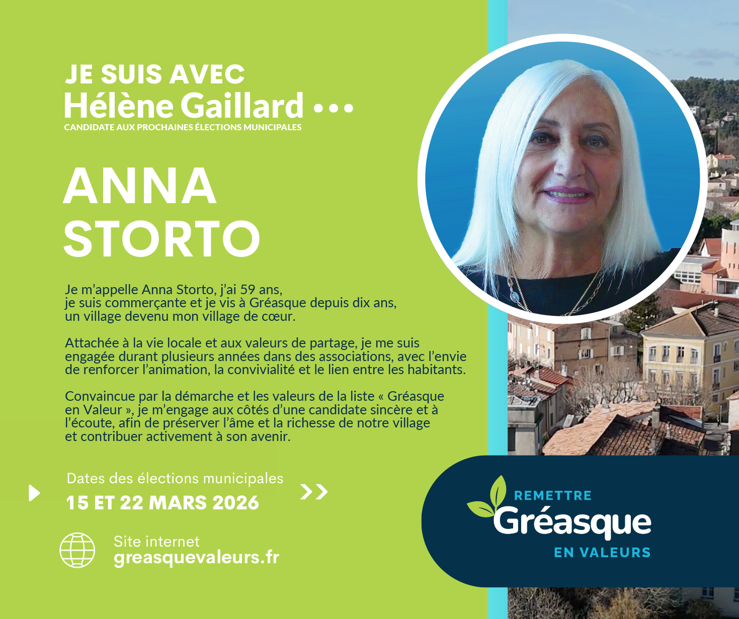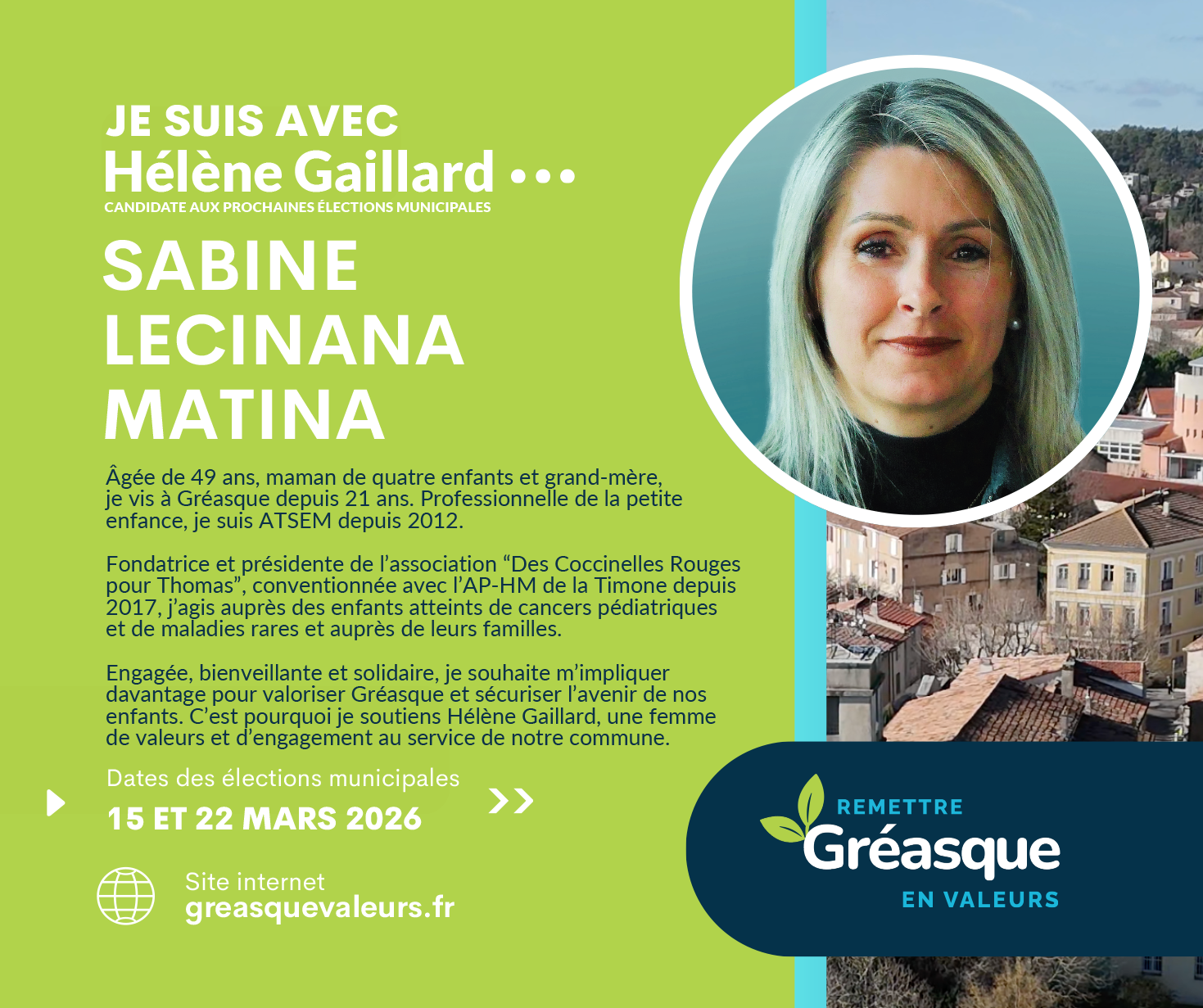 C’est également pour toutes ces raisons qu’Hélène me semble être la meilleure option pour un changement radical afin de Remettre Gréasque en Valeurs.